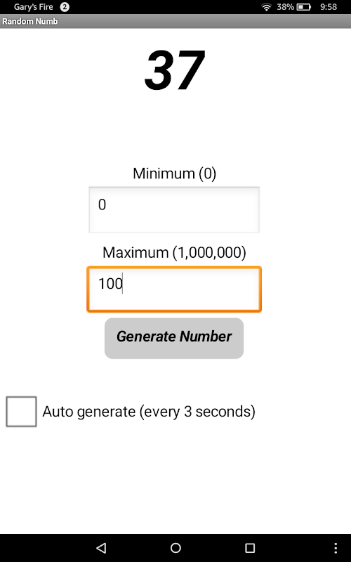 Included is an auto generate feature that creates a new random number every 3 seconds for you. So there's no need to constantly hit the generate button.