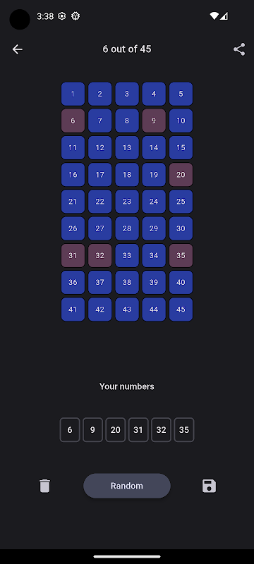 Czasami potrzebujesz pomocy z numerami loterii. Załóżmy, że grasz w kanadyjskie Lotto MAX, które wymaga 7 unikalnych liczb. Być może masz na myśli 2-3 ulubione liczby, ale potrzebujesz jeszcze kilku, aby zakończyć wybór. Liczby losowe zasugerują resztę liczb. Możesz odznaczyć niektóre numery i zamiast tego wybrać inne. Alternatywnie, dotknij przycisku Losowo, aby dokonać automatycznego wyboru. Zapisz swoje numery na później, udostępnij je znajomym lub usuń i zacznij od nowa. Zapisane numery są przechowywane na Twoim urządzeniu. Możesz także ustawić swoje szczęśliwe i unikane liczby.