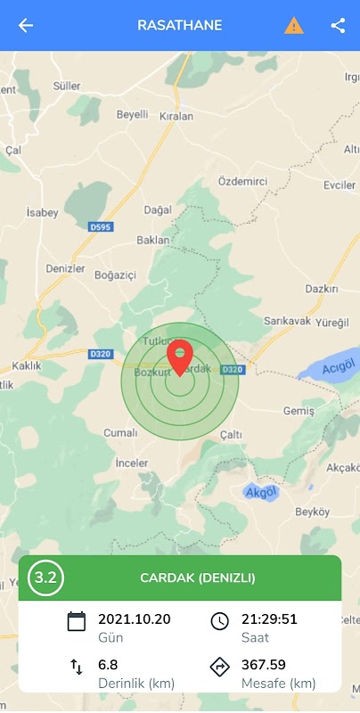 W aplikacji mobilnej Obserwatorium publikowane są zdarzenia sejsmiczne rozwiązane przez Boğaziçi University Kandilli Observatory i Earthquake Research Institute Regional Earthquake Tsunami Monitoring and Evaluation Center (BDTİM). Zdarzenia o głębokości 0 (zero) kilometrów wskazują na sztuczne wybuchy spowodowane przez człowieka w kamieniołomie, kopalni lub na placu budowy.