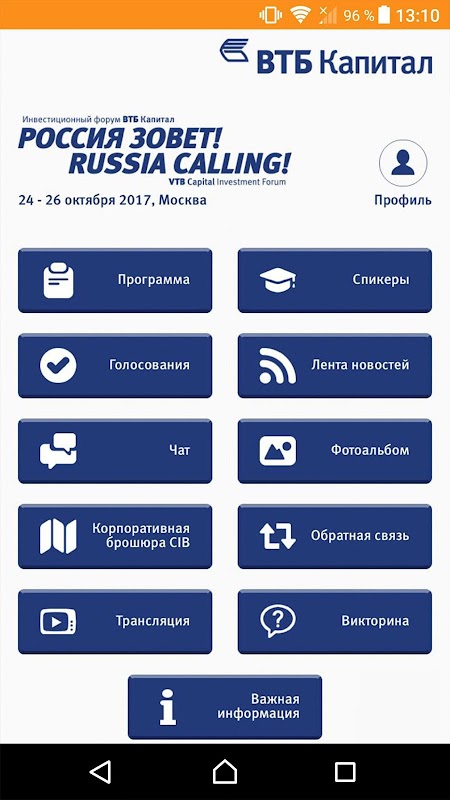 Application for VTB Capital Investment Forum RUSSIA CALLING!