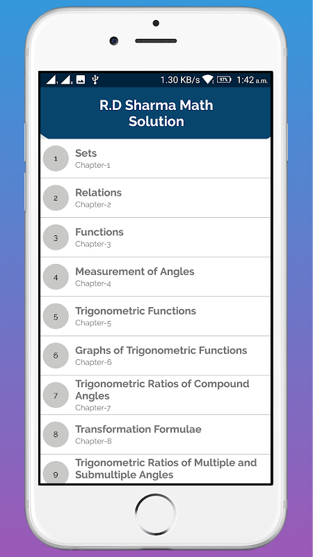 Oto kolejna aplikacja. Kompletne rozwiązanie RD Sharma dla klasy 11 Math. Szczegóły rozdziału podano poniżej: