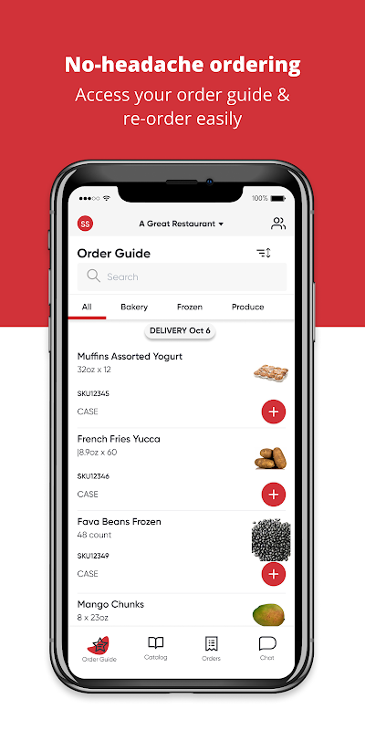 Nasza aplikacja mobilna umożliwia przeszukiwanie naszego pełnego katalogu produktów, zarządzanie i aktualizowanie przewodnika zamówień oraz kupowanie tego, czego potrzebujesz w momencie, gdy tego potrzebujesz. To część naszego zaangażowania w zapewnienie Ci możliwości składania zamówień, którą pokochasz.