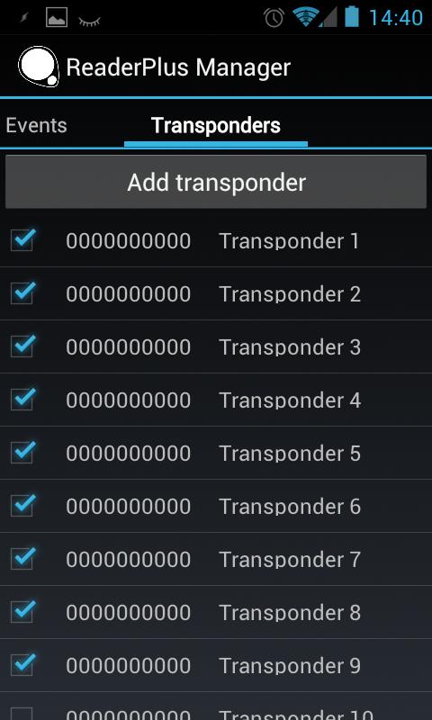 Ta aplikacja może połączyć się z czytelnikami Codatex transponderów i zarządzać transponderów i przeczytaj wydarzenia transponderów. Mam tylko testowane aplikację z czytnika 4plus. Jeśli masz inny czytnik, a aplikacja nie działa skontaktuj się ze mną, a ja dostosować oprogramowanie do czytnika.