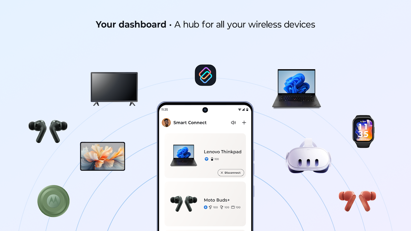 Zgodność funkcji może się różnić w zależności od urządzenia. Kliknij łącze, aby sprawdzić, czy telefon lub tablet jest zgodny: https://help.motorola.com/hc/apps/smartconnect/?t=compatible