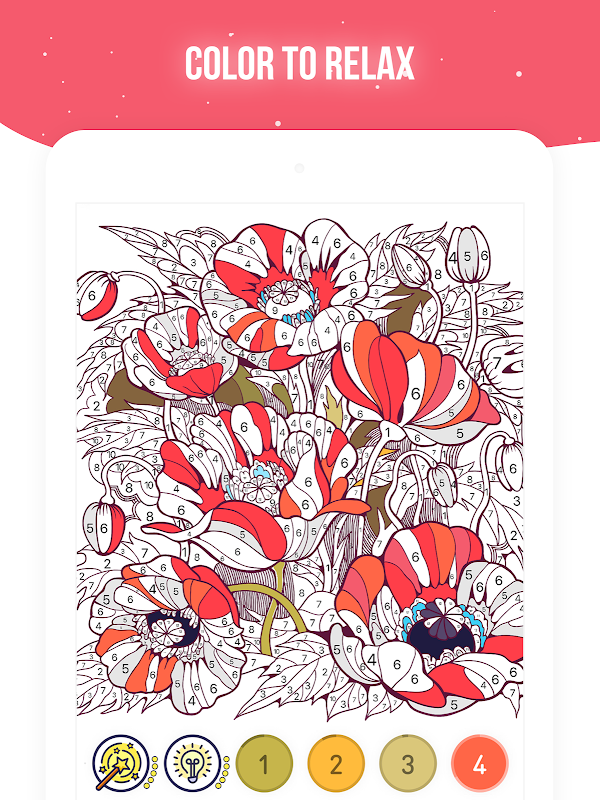- Różne narzędzia do kolorowania. Użyj Magic Hat, aby pokolorować obrazek jednym dotknięciem i Magic Wand, aby pokolorować wszystkie obszary pasującymi symbolami;