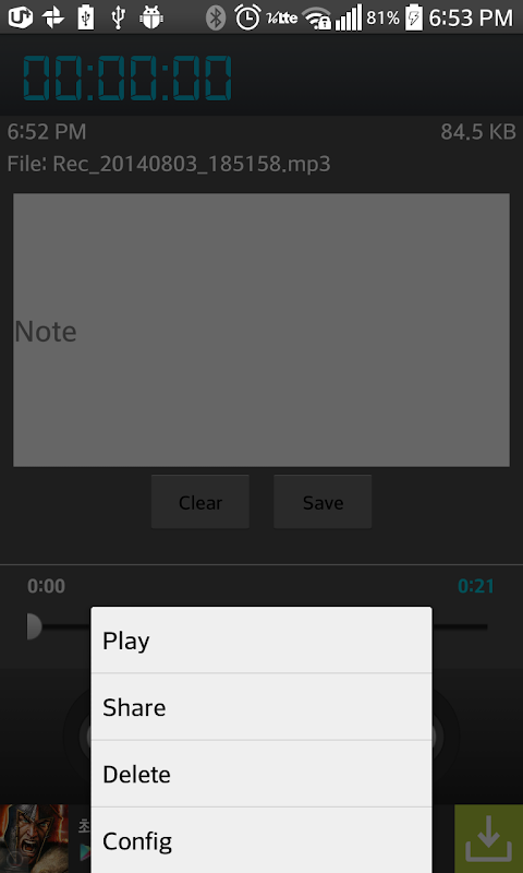 This app have the features Record / Pause / Share(such as email sent, MMS and Gmail)
