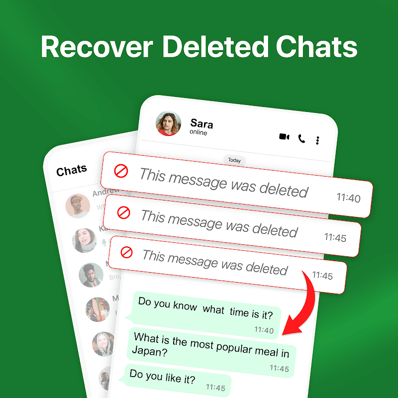 Nie denerwuj się i zachowaj spokój – jesteś teraz we właściwym miejscu! Dzięki tej aplikacji do przywracania usuniętych wiadomości nigdy nie przegapisz żadnego powiadomienia ani wiadomości, ponieważ skanuje usunięte wiadomości za pomocą powiadomienia, możesz natychmiast odzyskać usunięte wiadomości i inne. Dzięki tej usłudze odzyskiwania można łatwo przeglądać ostatnio usunięte wiadomości. Natychmiast pobieraj wiadomości, niezależnie od tego, czy chodzi o wiadomości tekstowe, notatki dźwiękowe czy naklejki.