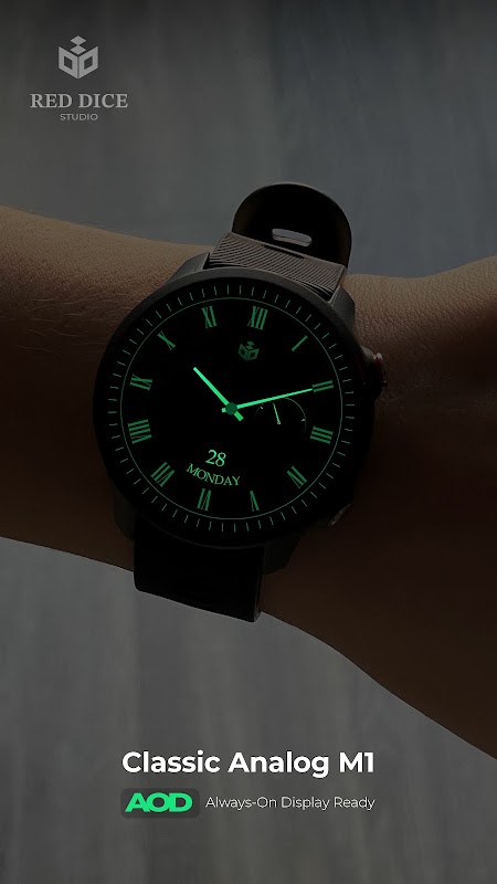 Klasyczny analogowy M1 oferuje ponadczasowy design, który łączy w sobie wyrafinowanie i praktyczność. Dzięki klasycznym cyfrom rzymskim i eleganckiej tarczy baterii, ta tarcza zegarka idealnie nadaje się dla osób ceniących tradycyjną estetykę z nowoczesnym akcentem. Tryb Always-On Display (AOD) zapewnia, że zegarek zawsze pozostanie stylowy i funkcjonalny.