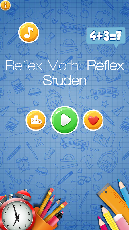 The real challenge in this Reflex Math: Reflex Student is beating the timer the quicker you choose the right answers the more time you'll have, but once you get slower or make a mistake it's hard to get back the time you've lost. Test your reflexes and ability to focus for long periods of time. As a bonus, you'll become a math addition whizz!
