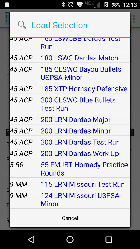 Kalkulator przeładunków zawiera bazę danych, w której można przechowywać każdy Twój osobisty ładunek. Jeśli więc podobnie jak ja przeładujesz broń dla więcej niż jednego kalibru, Kalkulator przeładowania zachowa wszystkie dane dotyczące ładowania, w tym porównania kosztów.