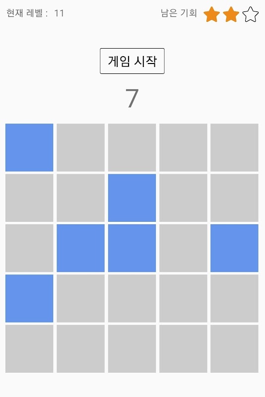 총 100단계로 구성되어 있고, 3번 실패 시 게임은 종료되어요!