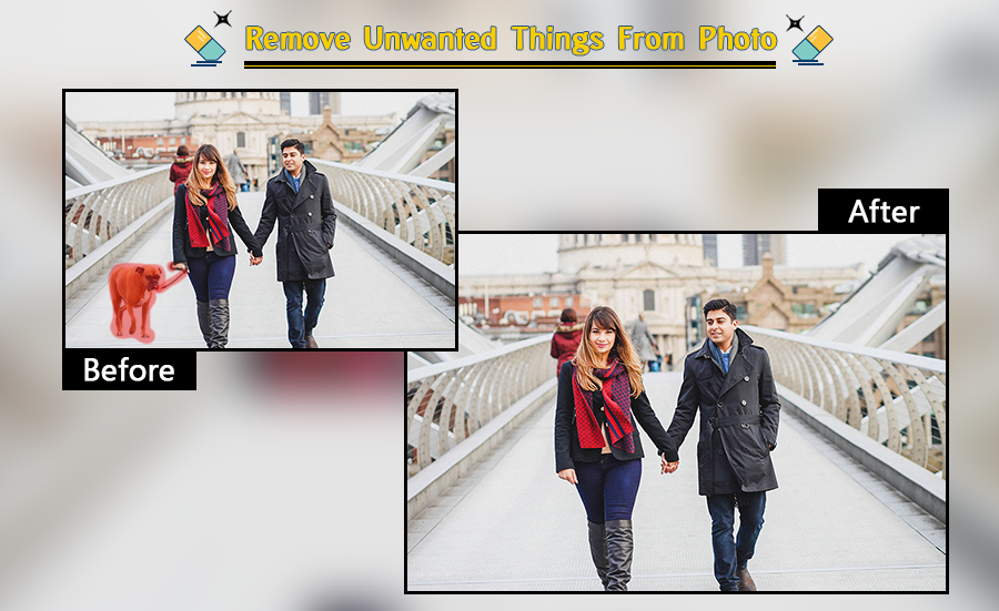 Dzięki aplikacji Usuń niechciane treści możesz usunąć wszystko ze swoich zdjęć jak profesjonalista, a nawet zastąpić je świetnym tłem, które każdy pokocha. za pomocą tej aplikacji możesz wymazać osobę, przedmiot gumki, naklejkę z gumką lub tekst na zdjęciu.