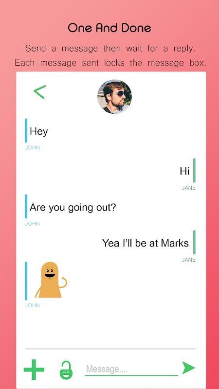Odpowiedź jest aplikacja wiadomości czatu, gdzie jeden na jednej rozmowy jest kluczem.