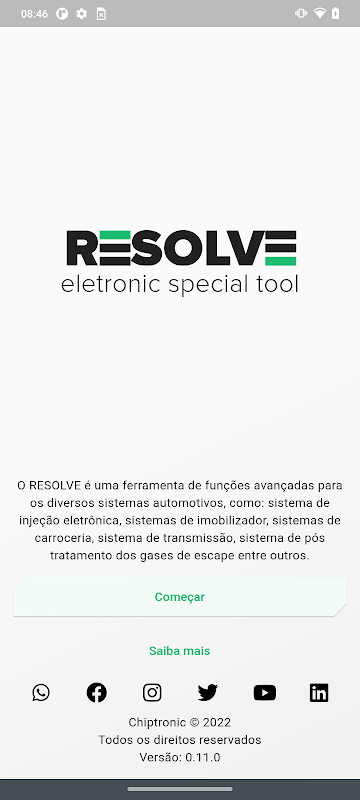 - Aplikacja RESOLVE będzie działać tylko w połączeniu ze sprzętem RESOLVE i SCR TEST firmy CHIPTRONIC, aplikacja ma tylko tę funkcję