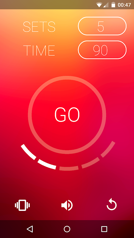 Funkcje obejmują powiadomienia w tle i powiadomienia opcjonalne. Aplikacja poinformuje Cię, kiedy nadejdzie czas rozpoczęcia kolejnego zestawu.