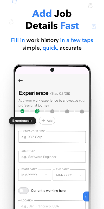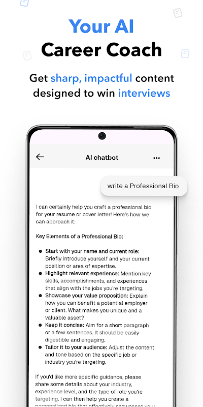 Uzyskaj zwięzłe, przyjazne dla rekruterów podsumowania doświadczenia zawodowego, wykształcenia i projektów. Sztuczna inteligencja podkreśla osiągnięcia za pomocą mocnych czasowników i zoptymalizowanych fraz, dzięki czemu Twoje CV wyróżnia się w systemach śledzenia kandydatów (ATS).