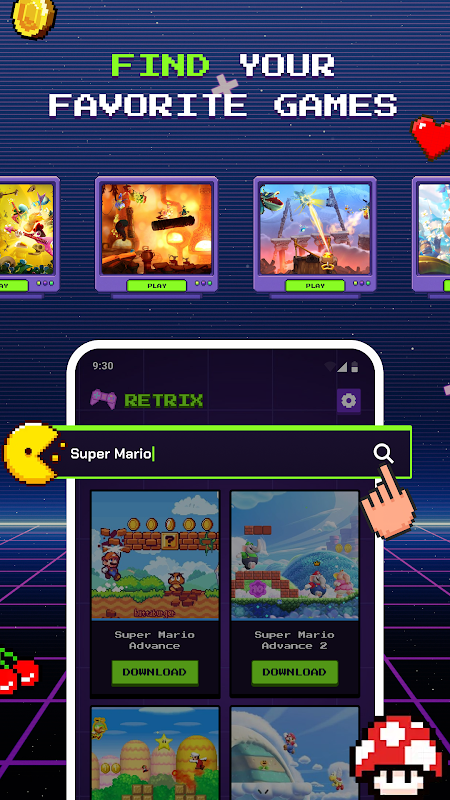 Poczuj magię klasycznych gier — natychmiast. Retrix oferuje ogromną bibliotekę legendarnych tytułów retro prosto na Twoje urządzenie, bez konieczności konfiguracji.