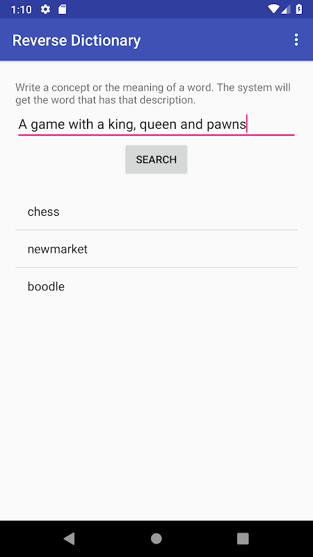 Ta aplikacja pomaga uzyskać słowo, które najlepiej opisuje pojęcie lub zdanie