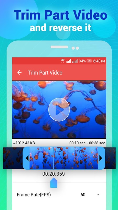 Możesz wybrać wideo z galerii lub nagrać nowe wideo za pomocą aparatu telefonicznego. Możesz odwrócić wideo w jakości HD wraz z Możesz edytować liczbę klatek (do 60 klatek na sekundę) wideo.