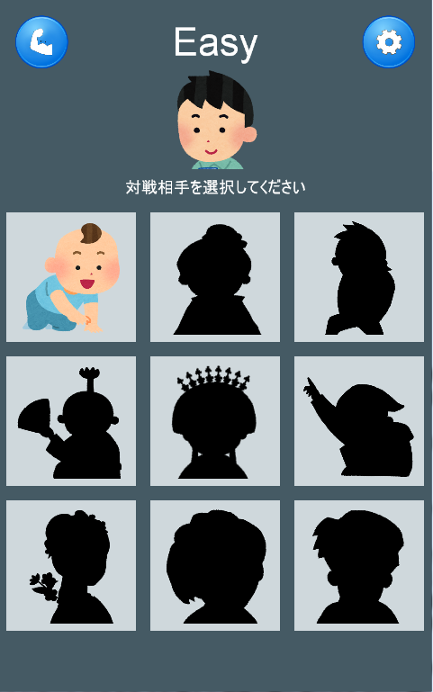 - 徐々に強くなる9人の相手(人口知能)プレイヤー