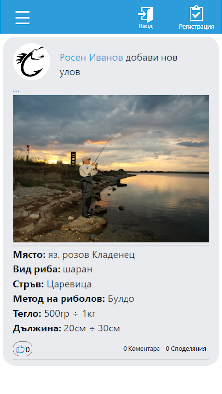 • Информация относно хванатото от ваши приятели и рибари, които следвате