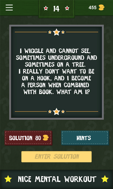 - earn coins for every solved riddle