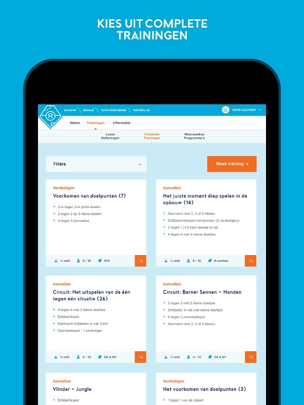 „Aplikacja jest częścią Rinus KNVB ASSIST, opracował platformę wiedzy dla wszystkich (młodzieżowych) trenerów w Holandii. Zawiera ćwiczenia, treningi i inne programy tygodniu.