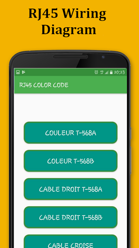 RJ45 color code or wiring diagram is Free application for android explain step by styp how to wire an ethernet rj45 color coding and wiring diagram for any cable UTP cat5 CAT6 cat7