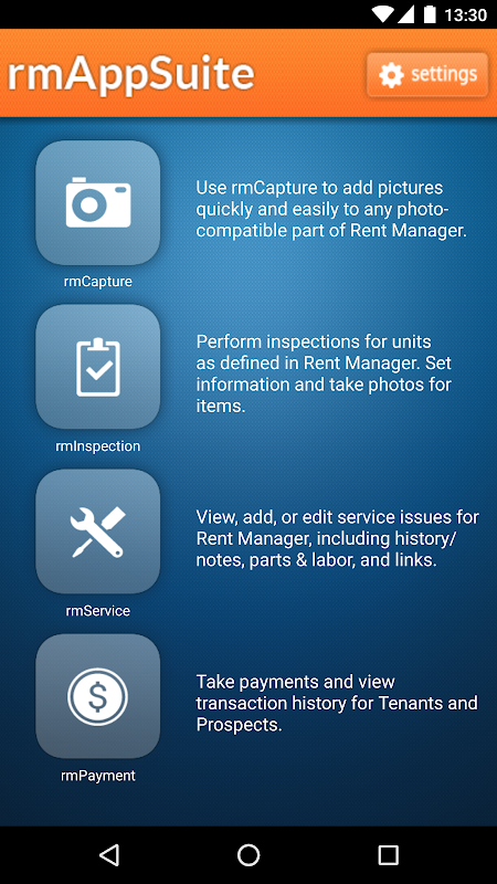rmAppSuite is a one-stop source for all of Rent Manager’s available Android apps. The suite includes: