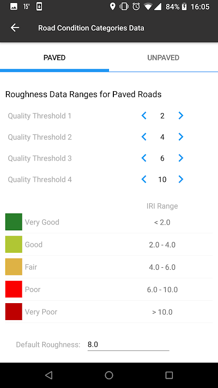 Droga Lab Pro został zaprojektowany jako narzędzie do zbierania danych dla inżyniera przez Bank Światowy we współpracy z Beldor Center Softteco i Postępu LLC Analytics. (Http://progressana.com). Z akcelerometrów na swoich smartfonach, ta aplikacja ocenia warunki drogowe, mapa sieci dróg, wykrywa poważne nierówności drogowych, a zagrożenia bezpieczeństwa raporty drogowego. Można nawet przesłać obraz wybojów, czarne plamy lub wypadków drogowych, itp pomocą prostego znacznika. Aplikacja działa na wszystkich urządzeniach z systemem Android, takich jak smartfony z systemem Android i tabletek. Proszę kliknąć na poniższy link, aby pobrać aplikację. Brak transmisji danych jest wymagane do uruchomienia tej aplikacji. Wszystkie dane zebrane można przesyłać pocztą elektroniczną do siebie lub przesłać do swojego konta Dropbox, gdy internet jest dostępny. Aby korzystać z aplikacji, urządzenie mobilne musi być umieszczona na stabilnej powierzchni w samochodzie, najlepiej zamontowane pionowo i szczelnie do przedniej szyby pojazdu.