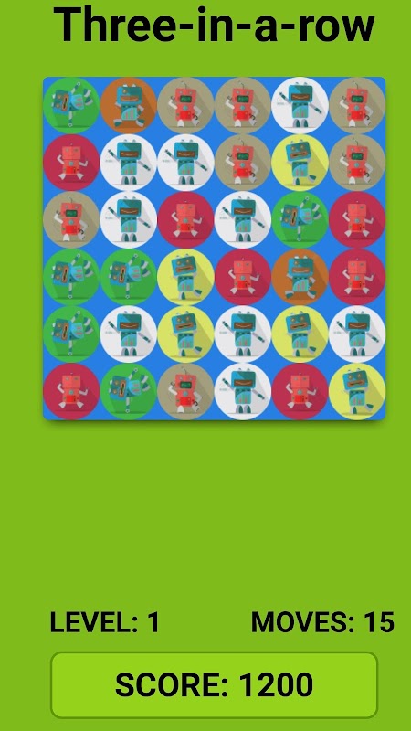 Line up three of the same Robots to watch them explode making room for more, and giving you points. See how many robots you can destroy!!