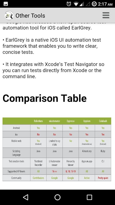 2 information about other mobile automation tools added