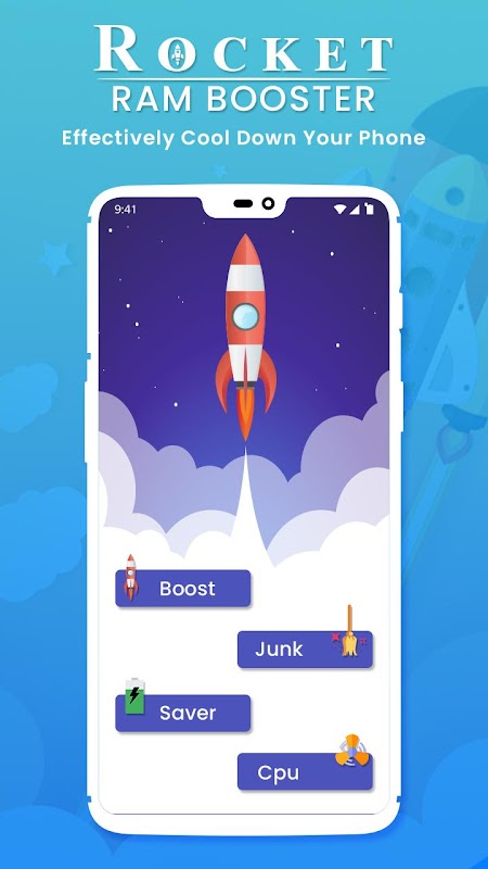Ram Booster Master can end unused applications easily with just one tap, so it can release more memory space and make the phone run more smoothly and fast without slow! With a unique management engine, Rocket Booster App will shut down idle Rocket Booster App running in the background to extend your phone's battery life. Unemployed Rocket Booster App, can reduce the capacity of your memory and RAM, it can also slow down the performance of your phone. Rocket Cleaner can back up your unused applications, save and reinstall if you need them.