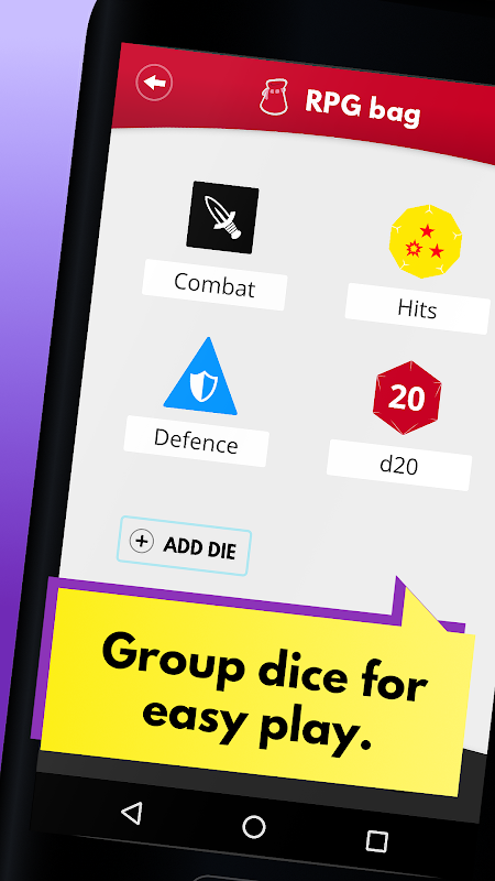 Łatwy edytor: Dodaj proste kostki, takie jak k6 lub k20, w mgnieniu oka lub zanurz się w zaawansowanym edytorze, aby dodać symbole lub różne liczby dla każdej twarzy. Możesz nawet ustawić różne kolory z każdej strony.