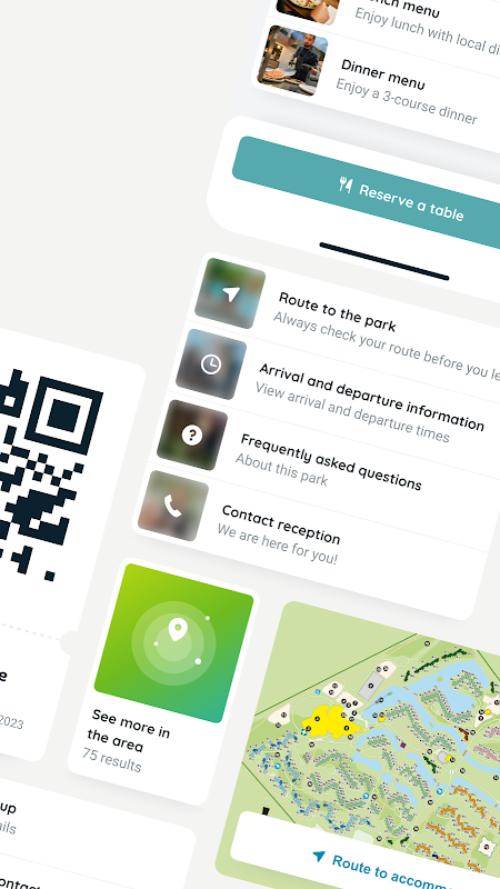 Nasz nowy ekran startowy służy jako punkt wyjścia zarówno do przygotowania pobytu, jak i do samego pobytu. Wszystkie ważne informacje o Twoim parku, od wszystkich udogodnień po przegląd Twojego zakwaterowania, znajdziesz tutaj. Nie sposób zgubić się w parku z naszą mapą. W przypadku wszelkich pytań skontaktuj się z recepcją parku.