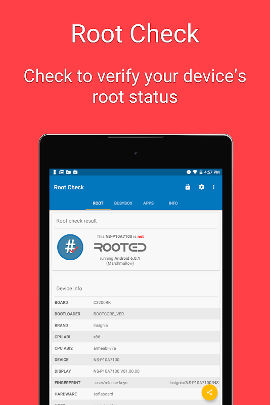 Masz root czy niestandardową pamięć ROM? Root Check informuje, czy Twój Android jest zrootowany w celu uzyskania dostępu do roota i niestandardowej instalacji ROM. Wykonane w 100% z miłości do Androida dla użytkowników root!