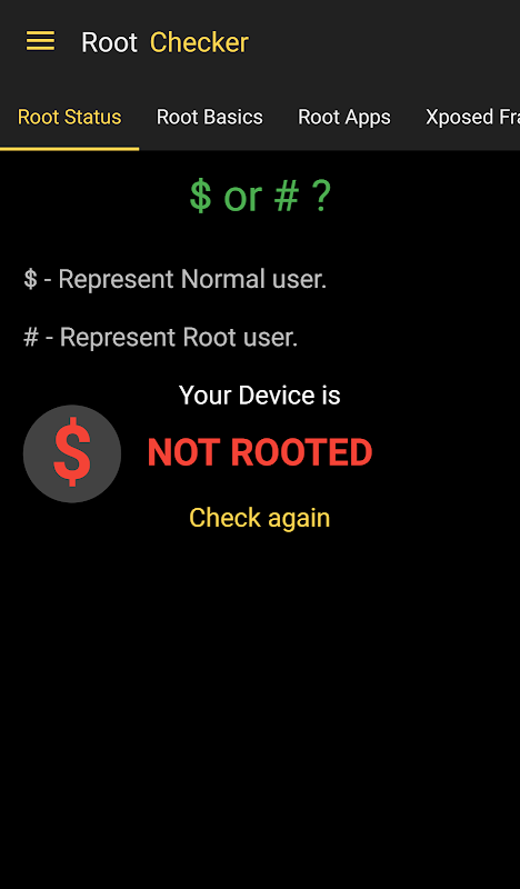 This Application will check whether your device is ROOTED or Not.