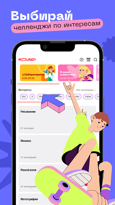 Round - Twoje hobby w jednym miejscu. Dołącz do wyzwań: rysuj, śpiewaj, uprawiaj sport lub rób koraliki - w naszej aplikacji zebraliśmy dla Ciebie 42 kierunki.