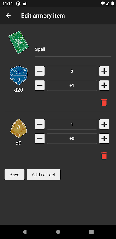 - zbrojownia: zapisz swoje rzuty, aby ułatwić grę; przykład: 1k4+5 + 2k8