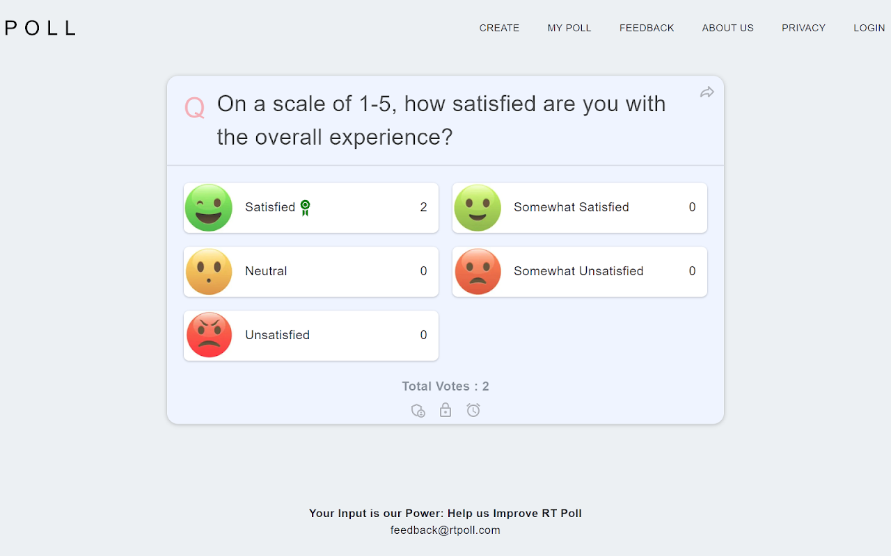 Nasza aplikacja jest dostępna na Androida i zapewnia łatwe opcje udostępniania na popularnych platformach społecznościowych. Dodatkowo RTPoll prezentuje wyniki w atrakcyjnych wizualnie wykresach, co ułatwia zrozumienie wyników na pierwszy rzut oka. Aplikacja jest idealna dla każdego, kto chce przeprowadzać ankiety i podejmować lepsze decyzje ze swoim zespołem. Jest prosty, łatwy w użyciu i idealny dla każdego, kto chce podejmować decyzje wraz ze swoim zespołem w bardziej wydajny i skuteczny sposób. Wypróbuj RTPoll już teraz i przekonaj się, jak może wpłynąć na proces decyzyjny Twojego zespołu.