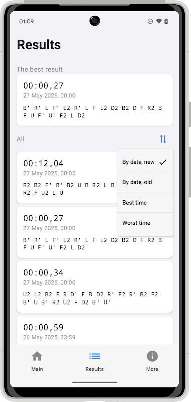 Rubik's Timer to poręczny i dokładny timer dla speedcuberów i profesjonalistów. Dzięki niej możesz śledzić czas spędzony na układaniu Kostki Rubika, analizować swoje postępy i poprawiać swoje wyniki.