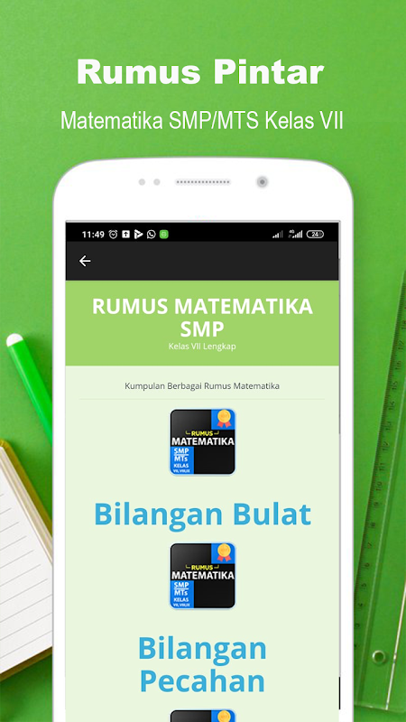 Rumus Matematika SMP/MTs Kelas 7,8,9 - Smart Materi Rahasia Cepat Kuasai Rumus Matematika merupakan aplikasi edukasi Rumus Matematika SMP Lengkap dan pembelajaran tentang materi soal Matematika SMP maupun USBN Matematika SMP.