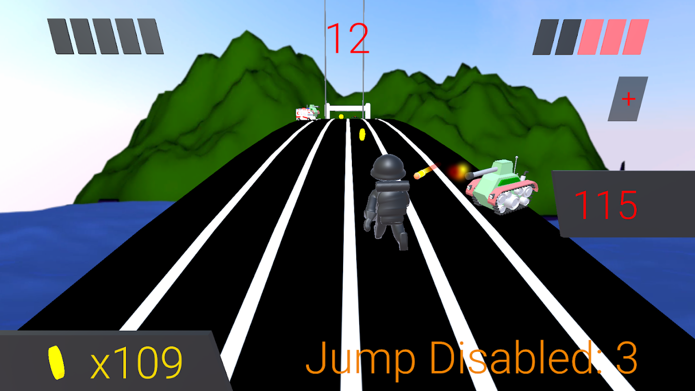 - If character collides with a car, it becomes unable to jump for 3 seconds.