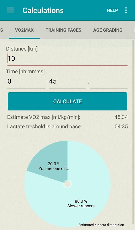 - Kalkulator wpływu wieku: możesz obliczyć czas z odsetka teoretycznego maksymalnego osiągnięcia dla twojego wieku.