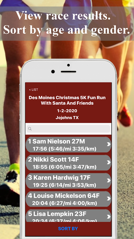 Step 4: Track runners on the course live during the race and see results immediately at race end organized by age and gender.