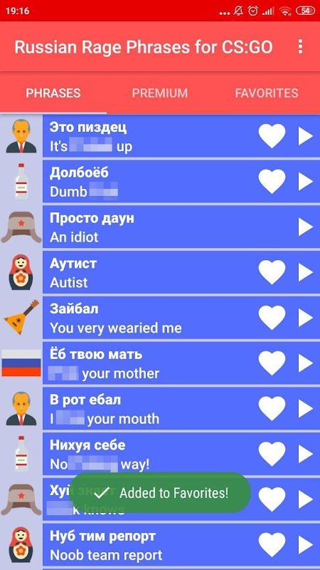 You can use this app not only in CS GO but also in similar games like Counter-Strike 1.6 or any other FPS that Russians like to play. If you do not like ragging and prefer mild phrases, download a similar app with no rage phrases: