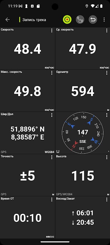• Tripmaster z polami dziennych kilometrów, średniej, dystansu, kompasu itp.