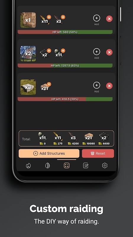 ♻️ Kalkulatory ekologiczne i niestandardowe — znajdź najbardziej opłacalne metody rajdów lub stwórz własny niestandardowy plan rajdu z ręcznymi wpisami HP, struktur i przedmiotów.