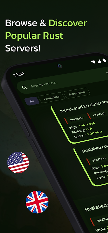 Szybko wyszukuj serwery Rust na całym świecie, dodawaj je do ulubionych i nigdy nie przegap wipe’a. Włącz powiadomienia, aby być na bieżąco ze wszystkimi resetami map i pełnymi wipe’ami serwera!