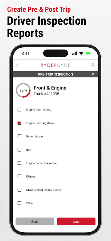 • Przekazywać kontrole kierowców (eDVIR): Zachowaj bezpieczeństwo i zgodność z przepisami. Przekazywać raporty z kontroli przed i po podróży, które trafiają bezpośrednio do warsztatu.